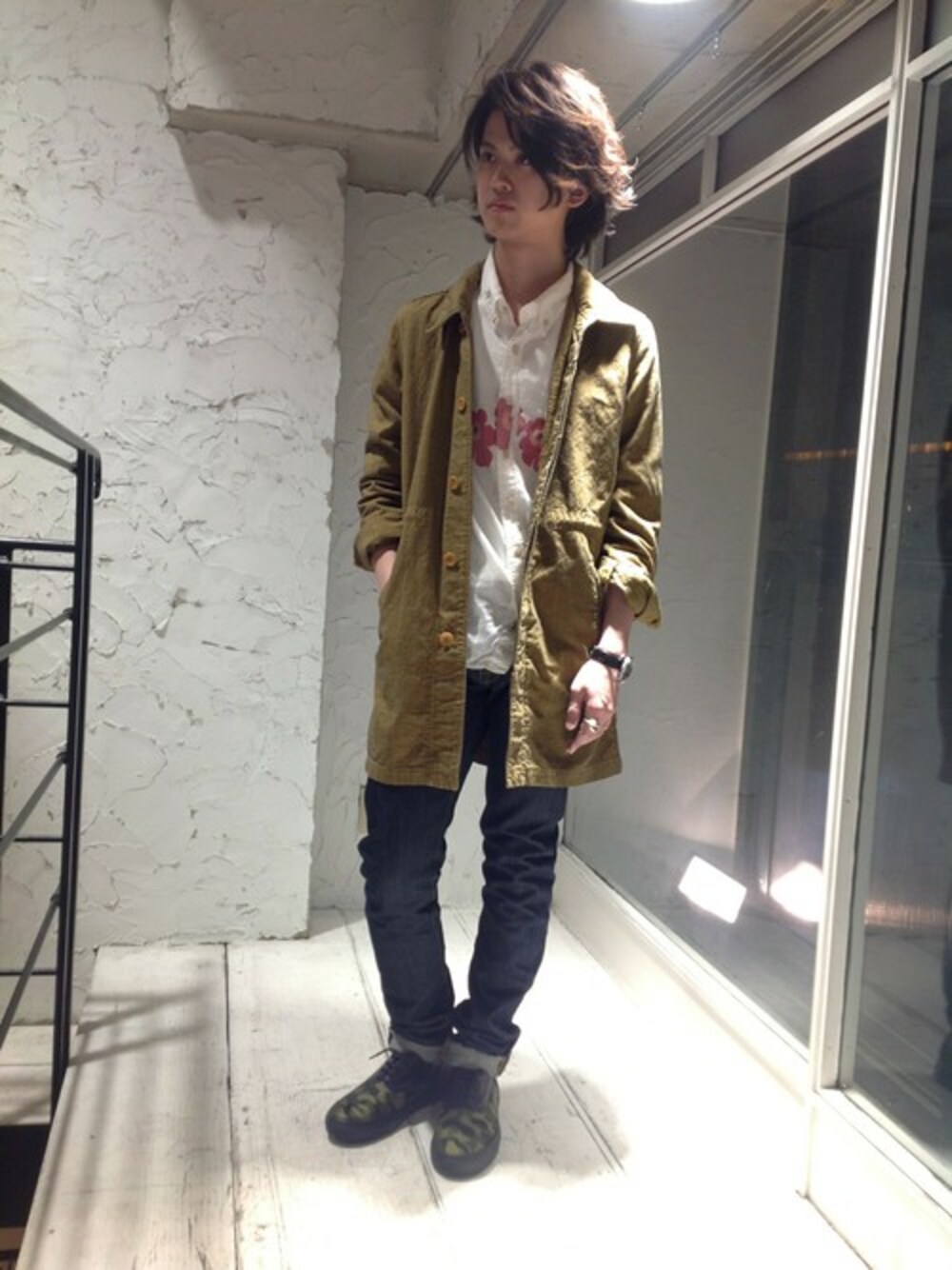 アロハな雰囲気を醸し出している、これからのシーズンにピッタリのシャツをチョイス。コートもREMIの新作です♪