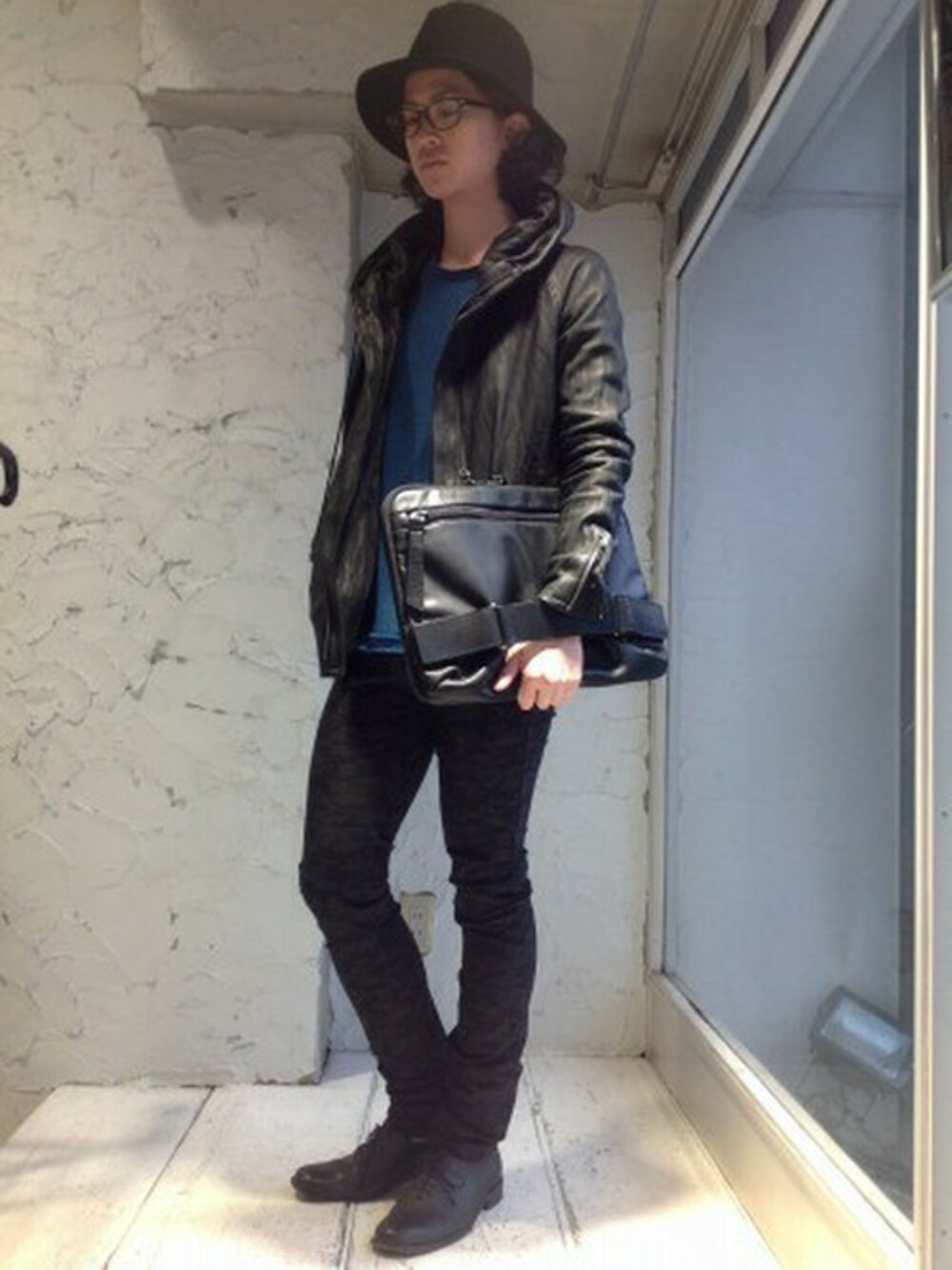 レザーをメインにモノトーンコーデ。