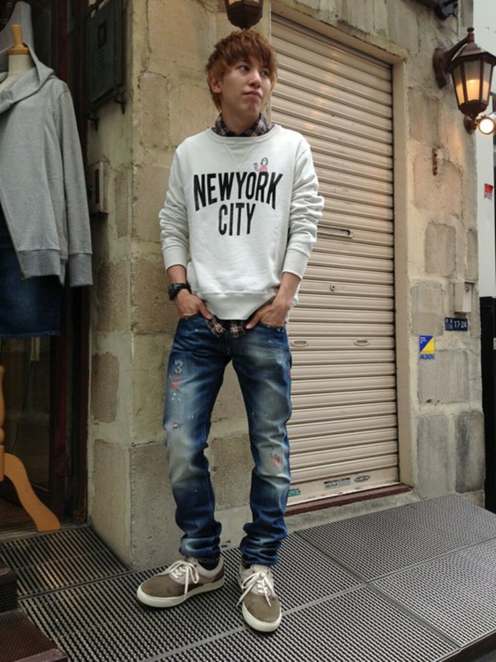REMI RELIEF新作をレイヤード! 主役のスウェットは、 14FWのスウェット「NYC」柄に別注でMr.ジョンをこっそりプラス。 シンプルなカレッジ系にREMIらしいお茶目な要素が加わりました! 生地の加工感もさすがの一言。 今、チャンピオンを筆頭にトレンドの1つでもあるスウェット。要チェックです!