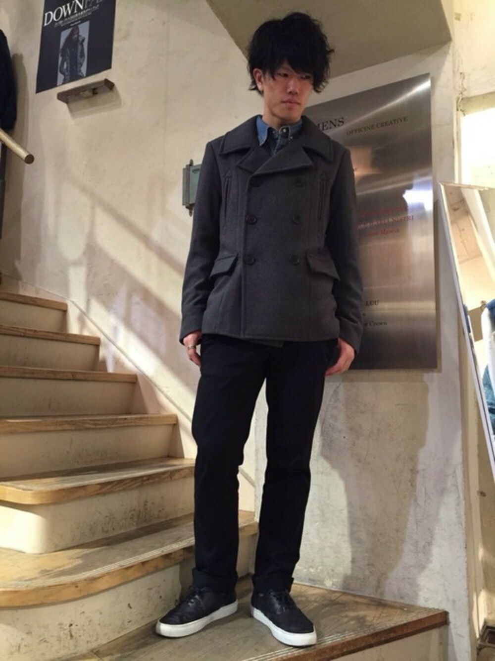 B'2ndSHINJUKUのピーコート「【B2】AKMxAMPHIBIAN (エイケイエムxアンヒビアン) 別注ピーコート (247)」を使ったコーディネート