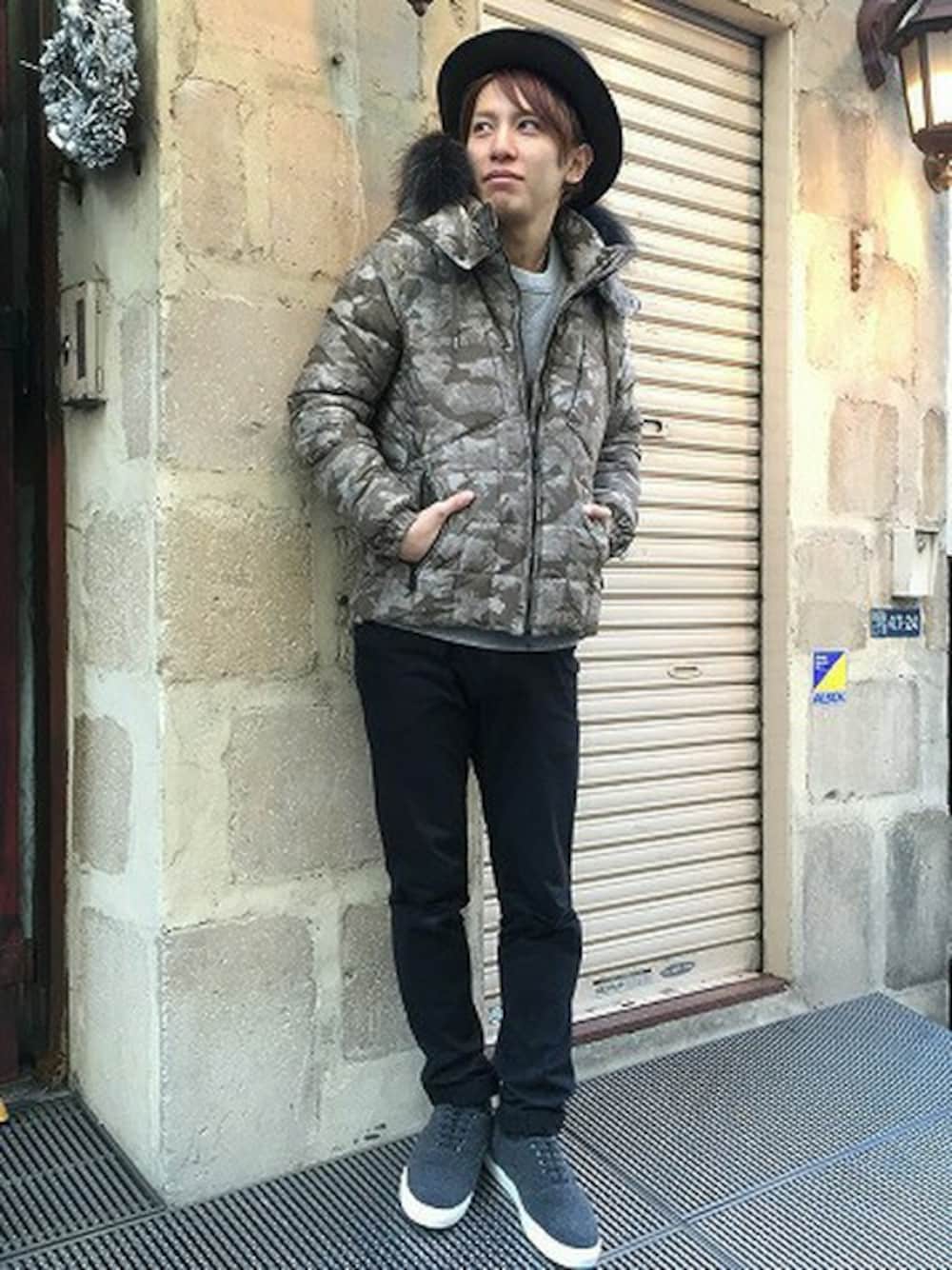 モコモコスニーカーや、カモフラ柄ダウンなど、個性的なアイテムをシンプルにコーディネート。 ワンランク上のお洒落感を演出できます★
