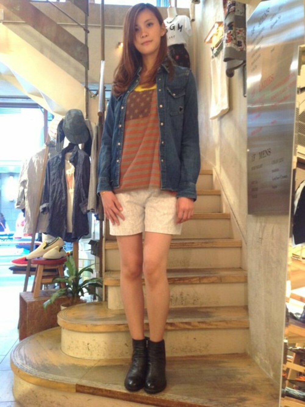 アメカジにまとめました。SWILDENSの星条旗キャミが主役★ ホワイトのショーツを差し色に。