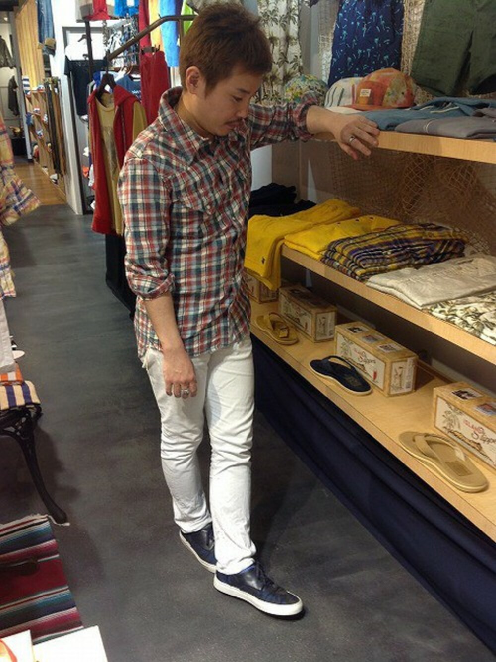 REMIのチェックシャツは、綿麻なので今の季節にピッタリな1枚。 生地の加工感やサイズ感はさすがの一言! 爽やかにホワイトデニムを合わせました。