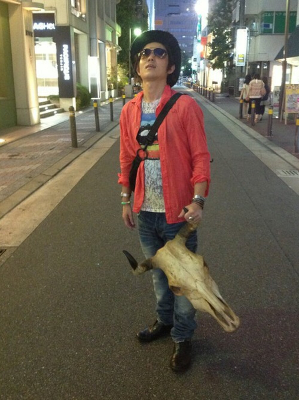 インパクトのあるTシャツをメインに、さらにカラーシャツでアクセントを☆