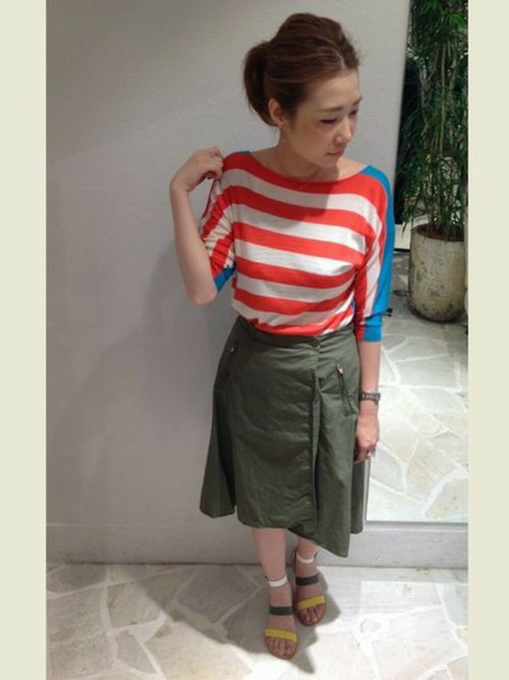 マリンテイストなニットに、ミリタリーなスカートを合わせてB'2ndらしいMIXカジュアルに。