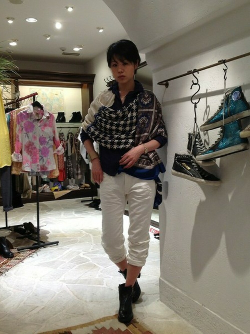 すっきりシルエットのカラーシャツに、あえてサイズアップして選んだパンツをルーズに穿いて。B'2ndらしさを出しました♪