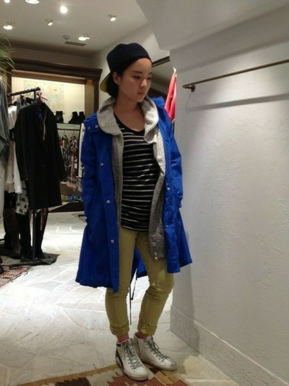 トレンドのカラーアイテムやCAPを幼くならないようにコーディネート。 大人のストリートスタイルです♪
