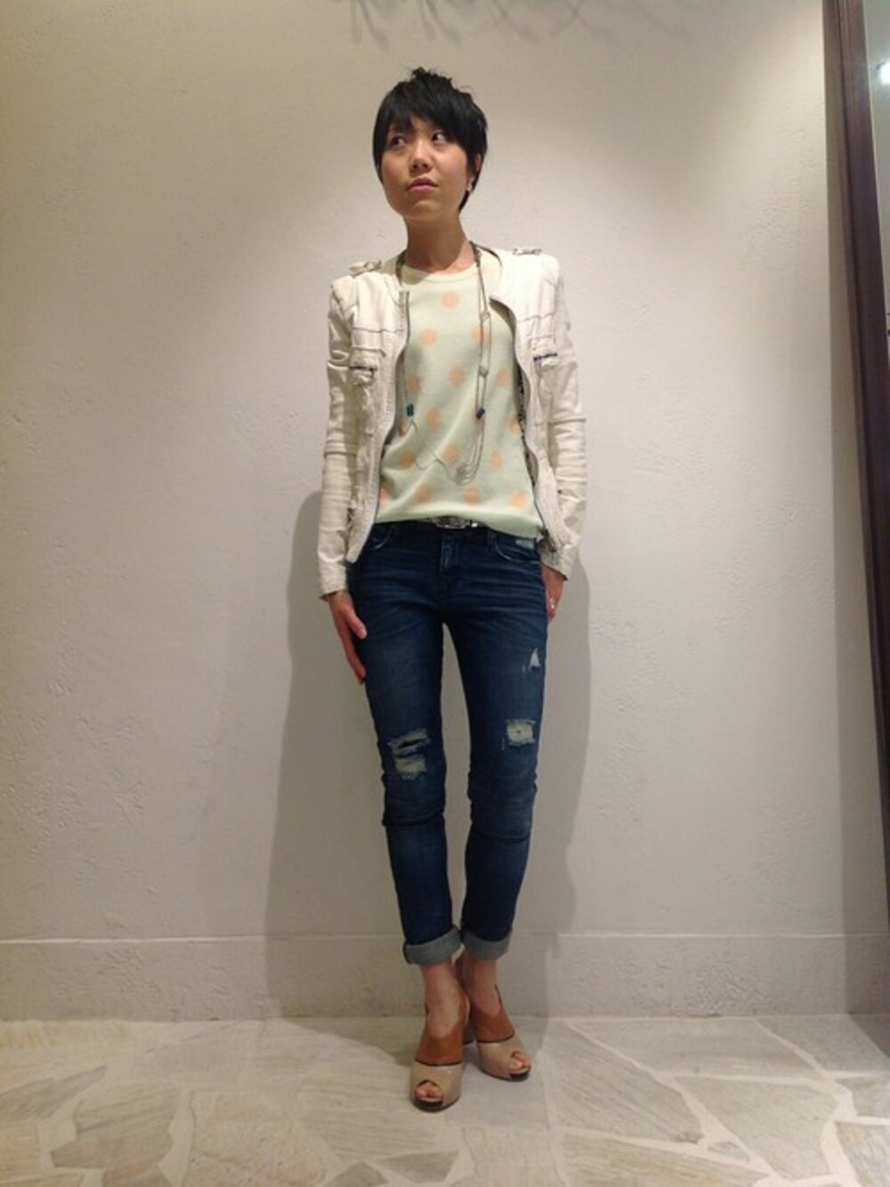 GIORGIO BRATOのM65タイプ、店頭にはトレンドのホワイトもございます♪ 淡い色味のアイテムと、足元はパンプスで女性らしくまとまりました。