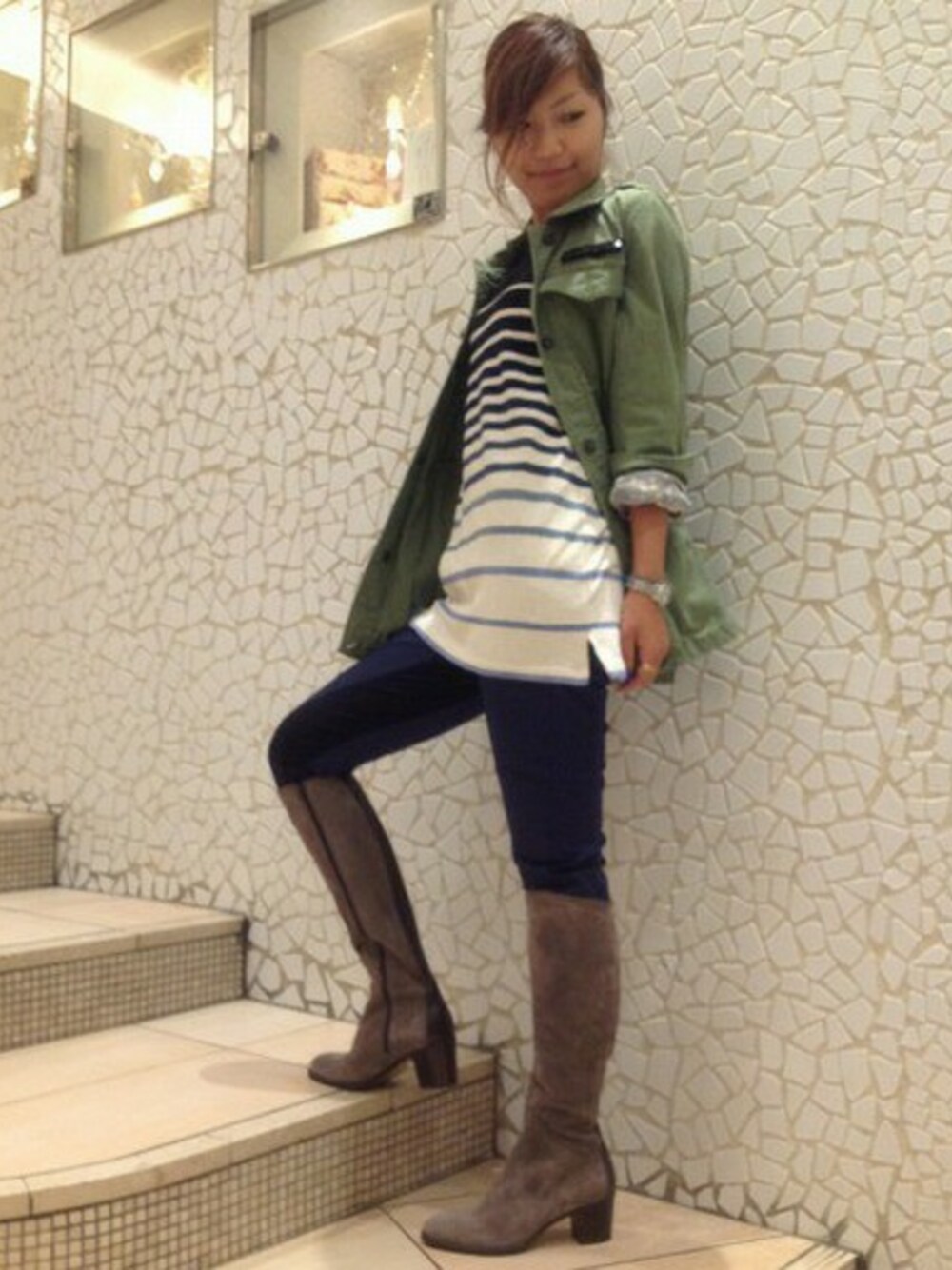 カジュアルなアメカジスタイルに、足元は形の綺麗なブーツで女性らしさをプラスしました。