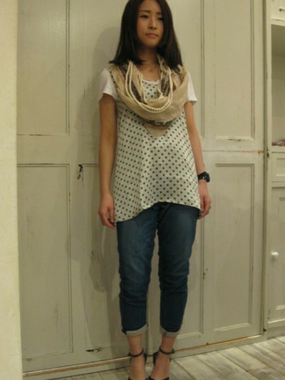 シンプルなコーディネートにCITRUSのストールをアクセサリー感覚で! ポイントになります★