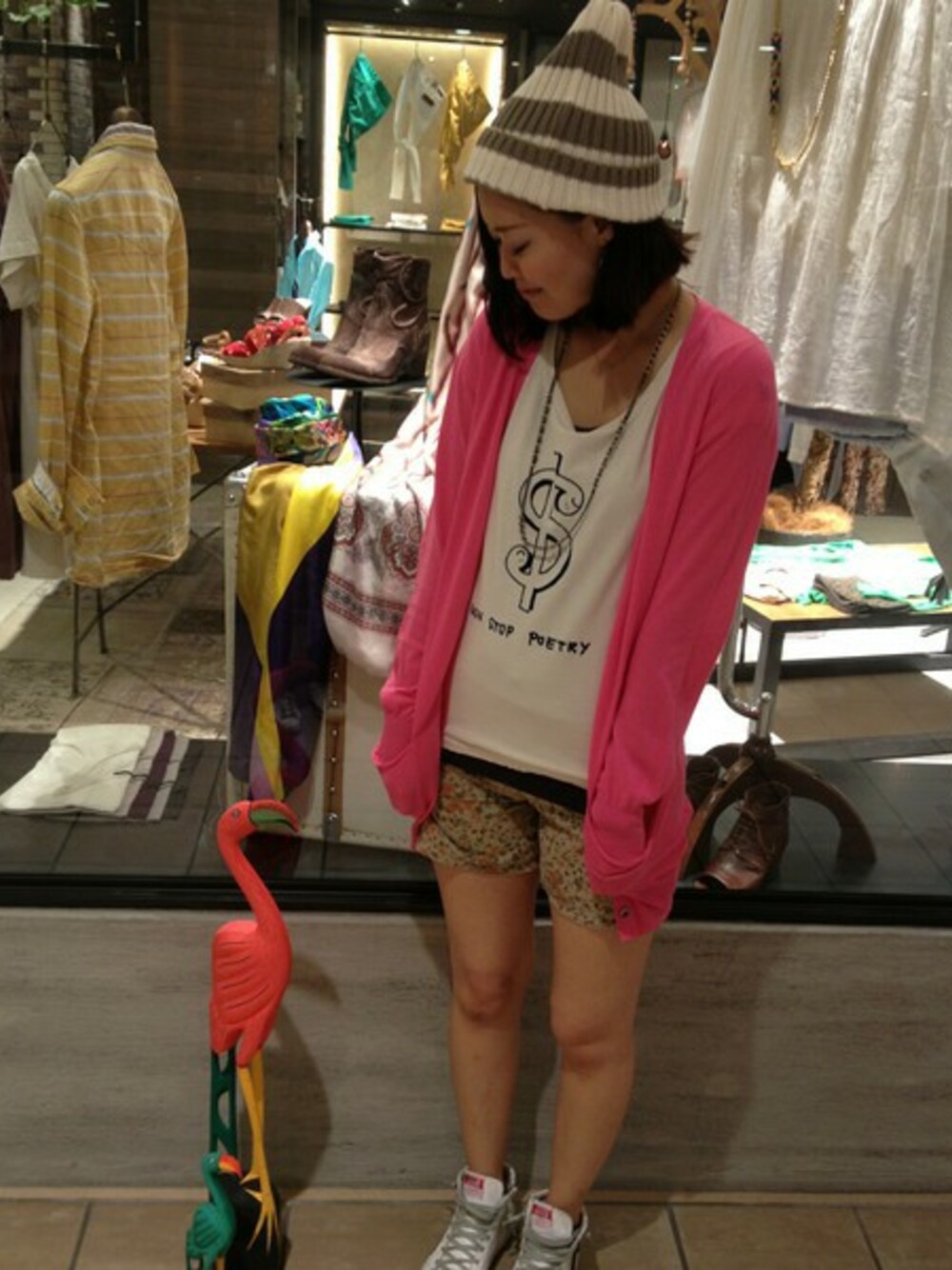 夏らしい元気なスタイルの提案です♪ 柄ショーツ&カラーカーディガンでトレンド感を☆