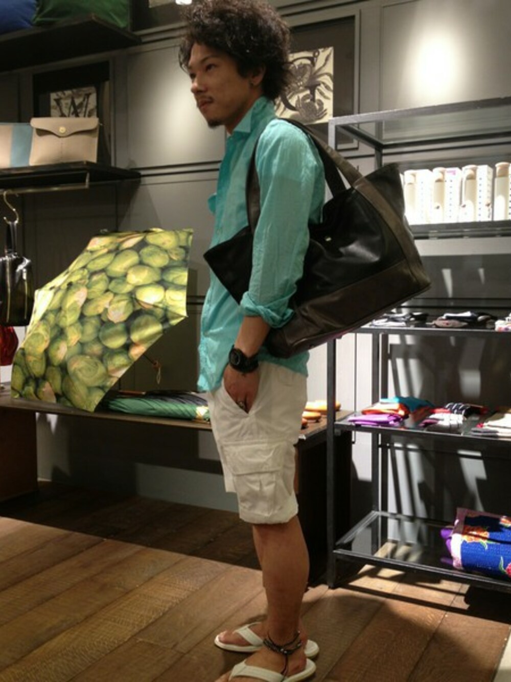 シンプルなスタイルには、バッグやアクセサリーでポイントを。