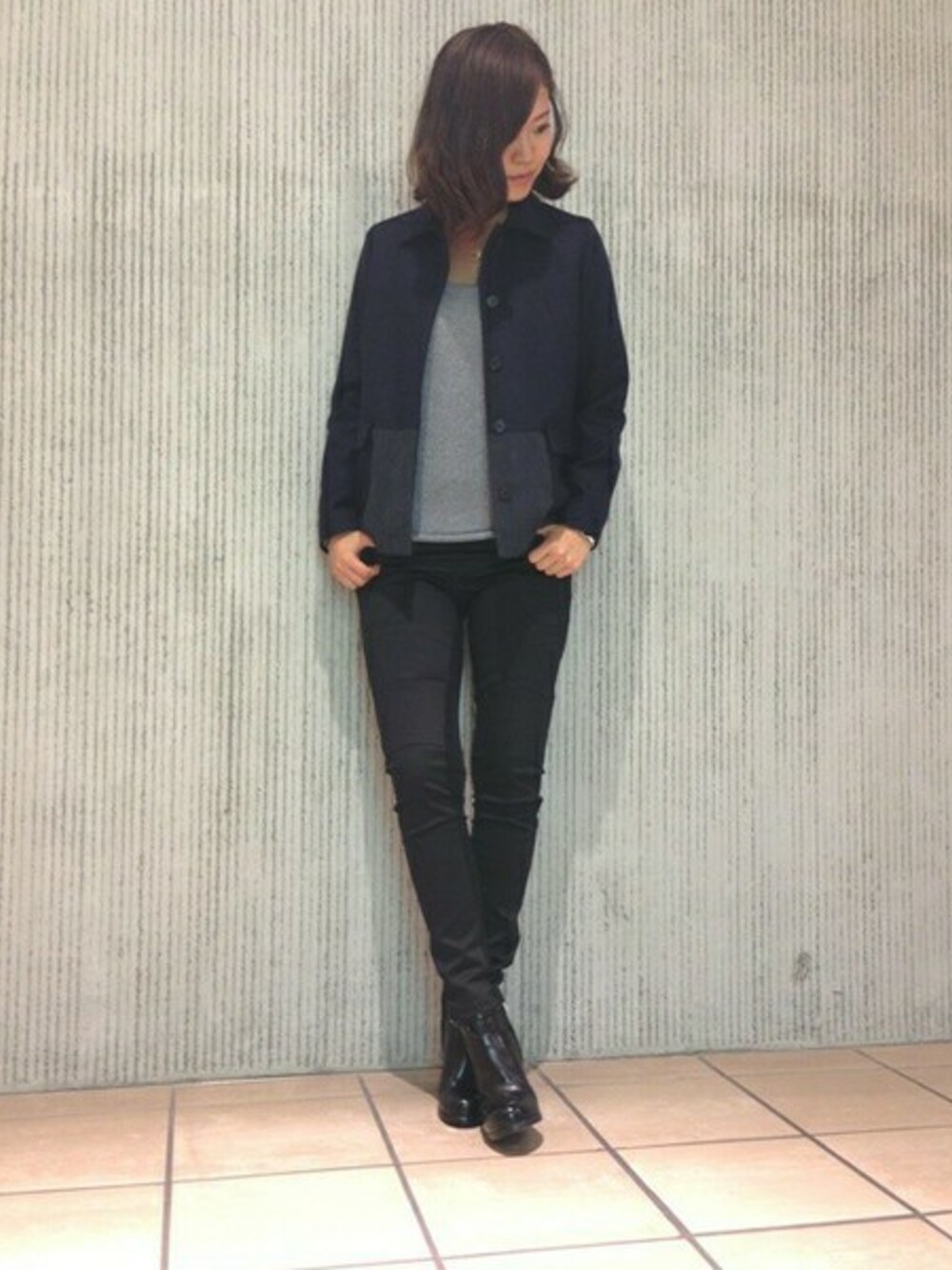 とことんマニッシュなスタイリングに。カラートーンも統一しモード感もUP。
