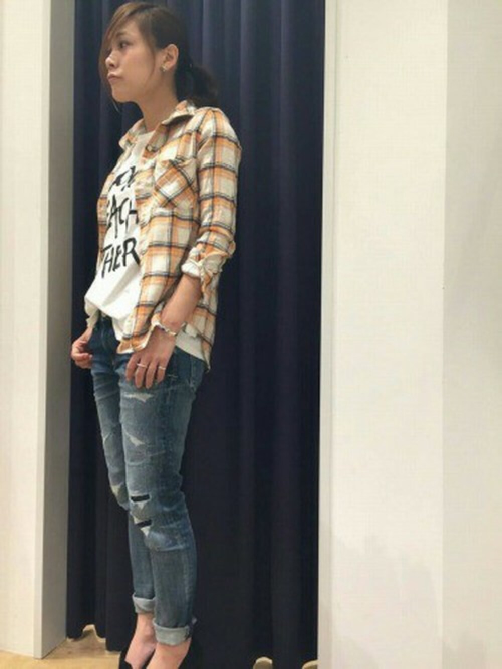 B'2nd E-ma UMEDAのデニムパンツ「yanuk (ヤヌーク) KAYクラッシュ (243)」を使ったコーディネート