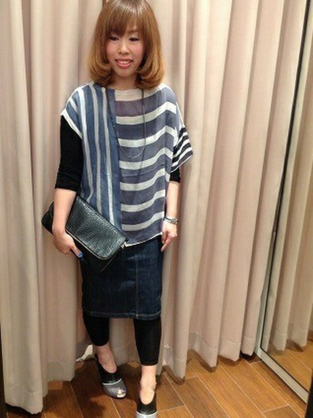 ネイビー、ブラック、ホワイト、で全身統一。 シックなカジュアルスタイルに。