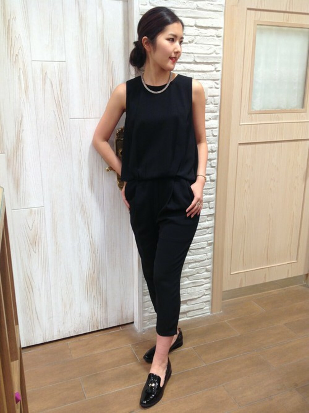 オケージョン対応にもばっちりなSugar roseのオールインワン。足元はタッセル付オペラでマニッシュにまとめました。