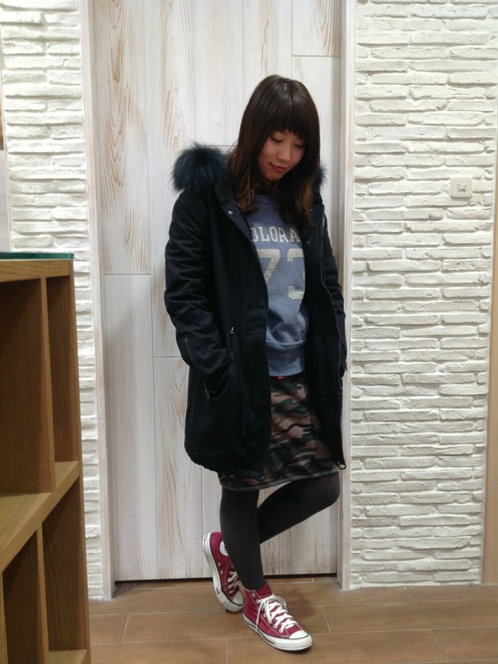 カモフラのグリーンと、レッドのコンバースでさりげなくX'masカラーを取り入れてみました♪