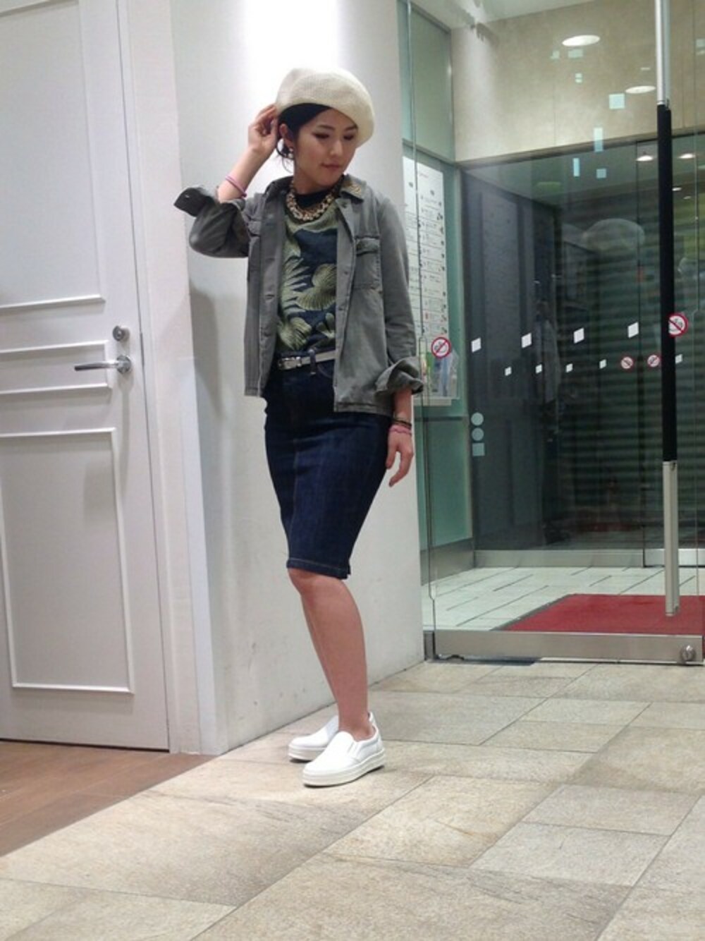アメカジテイストのアイテムを土っぽくにえないように、トレンドのホワイトを取り入れてモードにスタイリングしました。