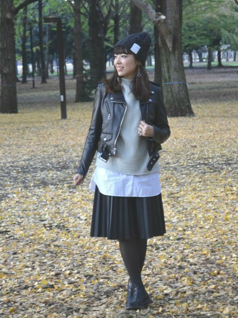 オーバーサイズのアイテムをレイヤード。ライダースはコンパクトにしてバランスをとりました。