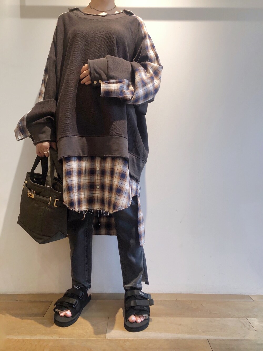 リメイクスウェットをゆるっとパンツとレイヤード。