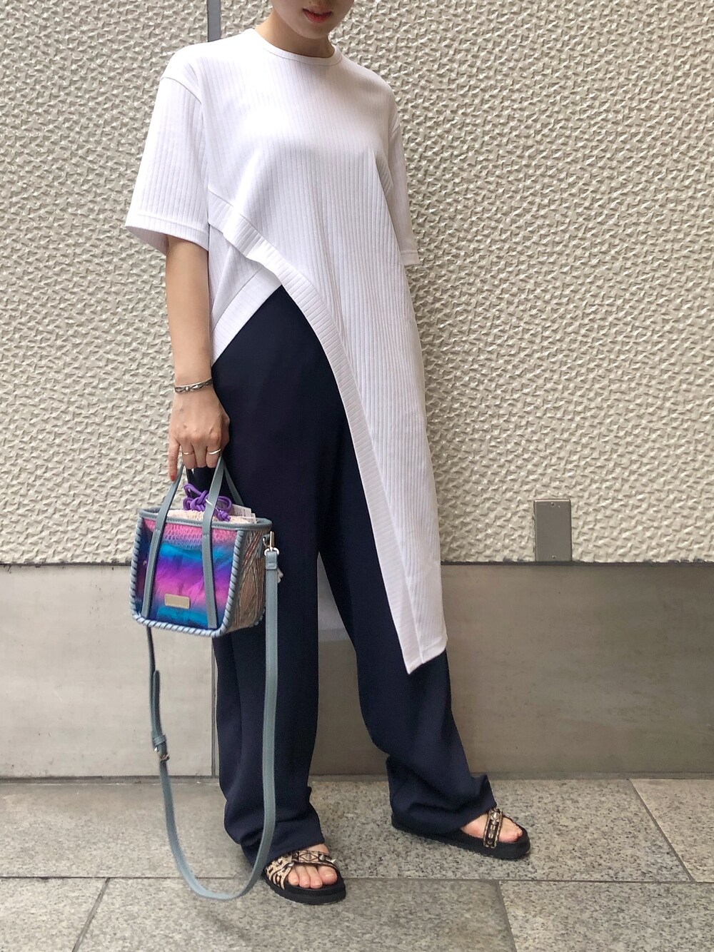 シンプルコーデに夏っぽいバッグ🫐
