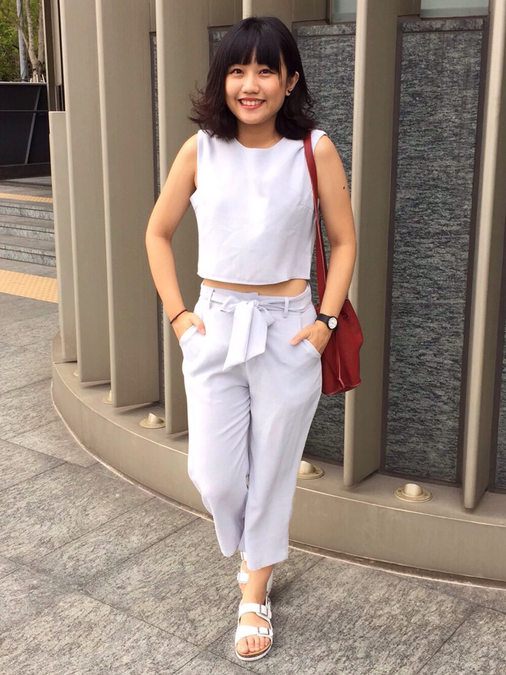 久違的紅色小牛皮水桶包 配上水藍露肚臍裝莫名合拍😉 搭配勃肯涼鞋很舒爽的穿搭 很不像我但我漸漸愛上這風格