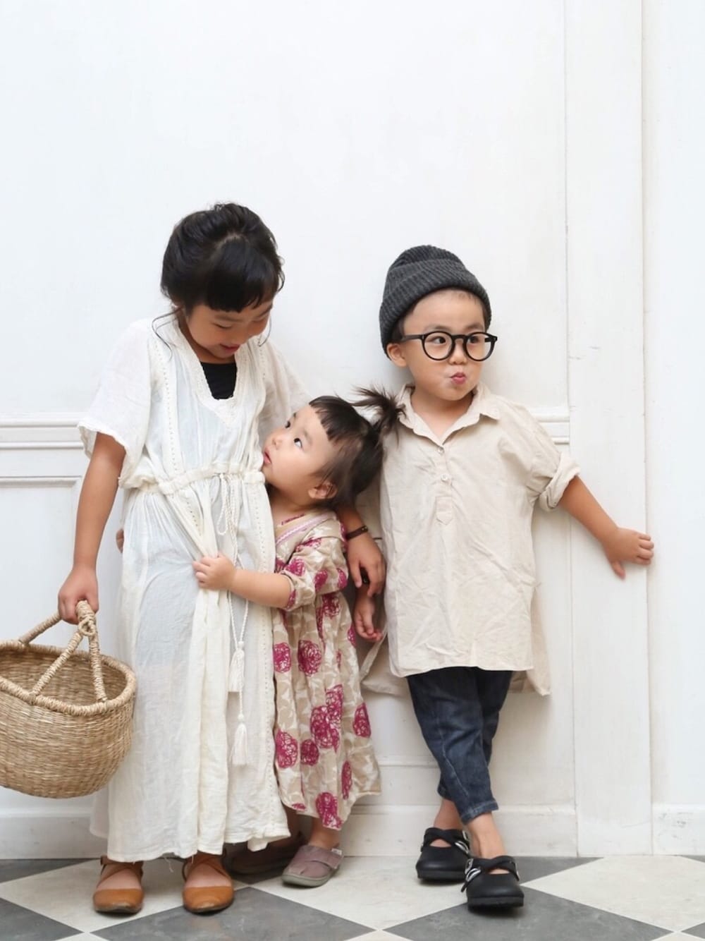 お久しぶりです。 リネン素材でリンクコーデ。 姉 7歳 弟 5歳 妹 2歳 になりました(^^)