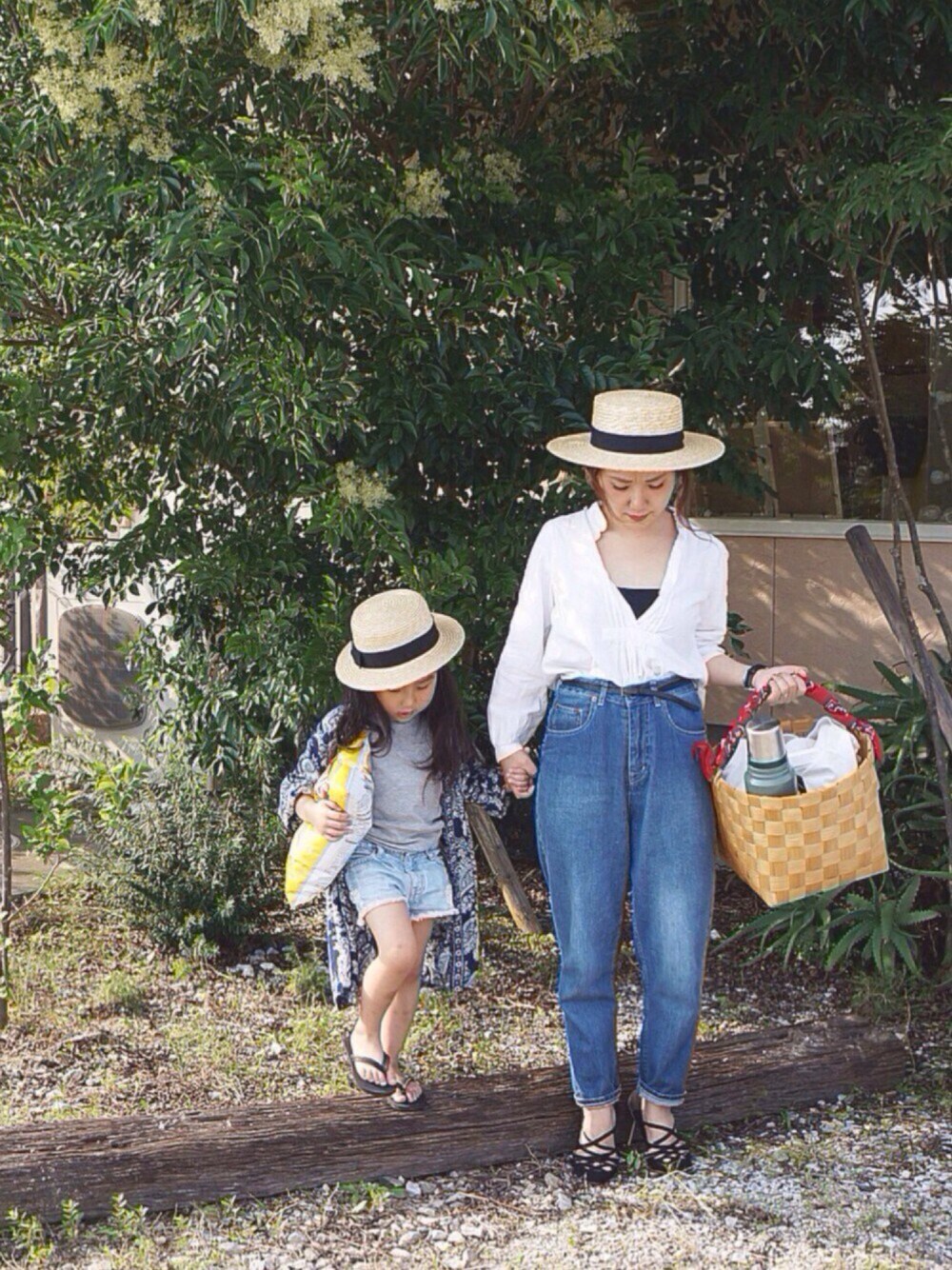 親子coordinate* ピクニックした日⑅◡̈* ☝︎実家の庭先で🙈照