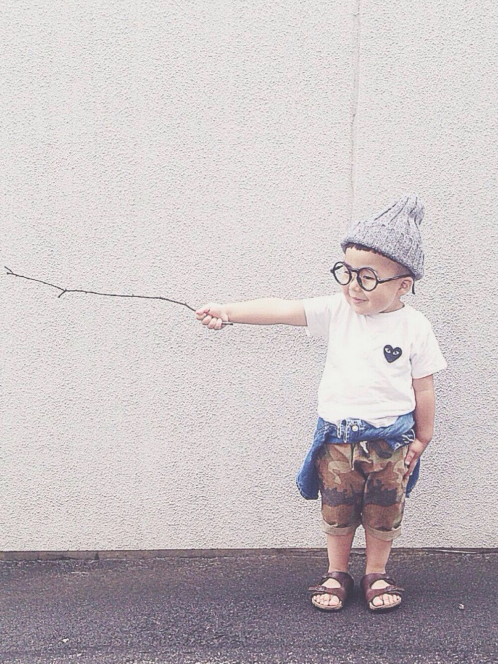息子coordinate* 今日のぼく⑅◡̈* 春夏素材のニット帽と 👖はロールアップでハーフパンツにして涼しげに♡