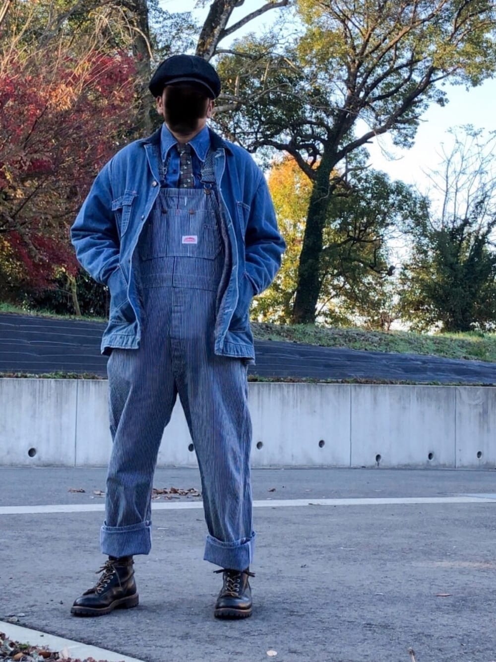 おはようございます。 キャスケット NoBrand カバーオール SEARS 70’s デニムシャツ GWG 70’s オーバーオール ROUND HOUSE 70 - 80’s ブーツ REDWING 基本青で、小物を黒で統一しました。 滅茶苦茶カジュアルかつ作業着感を、 少し緩和できているでしょうか? ヒッコリーのオーバーオールはトップス次第で、 少年感がかなり出てしまうので、 個人的には少し難しいアイテムに感じます。 オーバーオール着始めた頃は、 外に出ると少し恥ずかしかったですが、 今は全くです。浮きますが。 病院行ってきます。