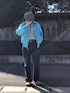 ブルー系のデニムパンツを着用したメンズの春コーディネートの2枚目の写真