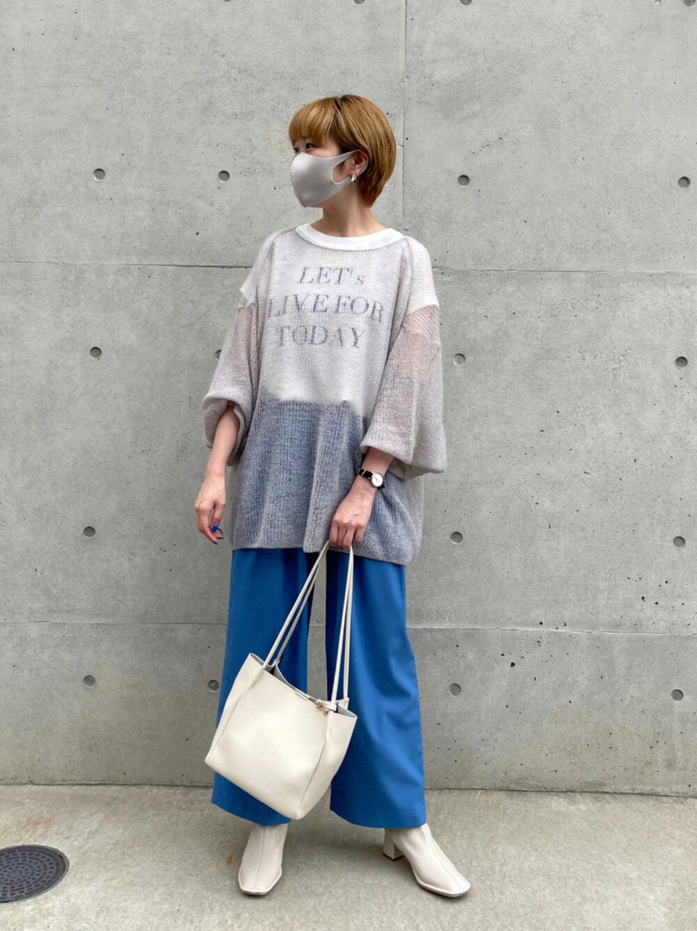 透け感のあるモヘアニット♡ 昨年も大人気で今年も登場したのです! BLUEパンツと合わせて、 より今季らしいスタイリングにしました。 insta @baba_lemage
