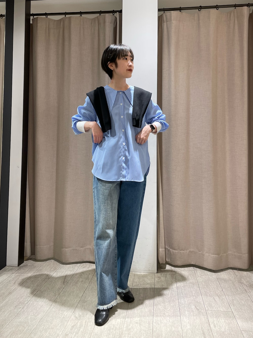 b a b aのシャツ/ブラウス「ウサ襟ストライプシャツ」を使ったコーディネート