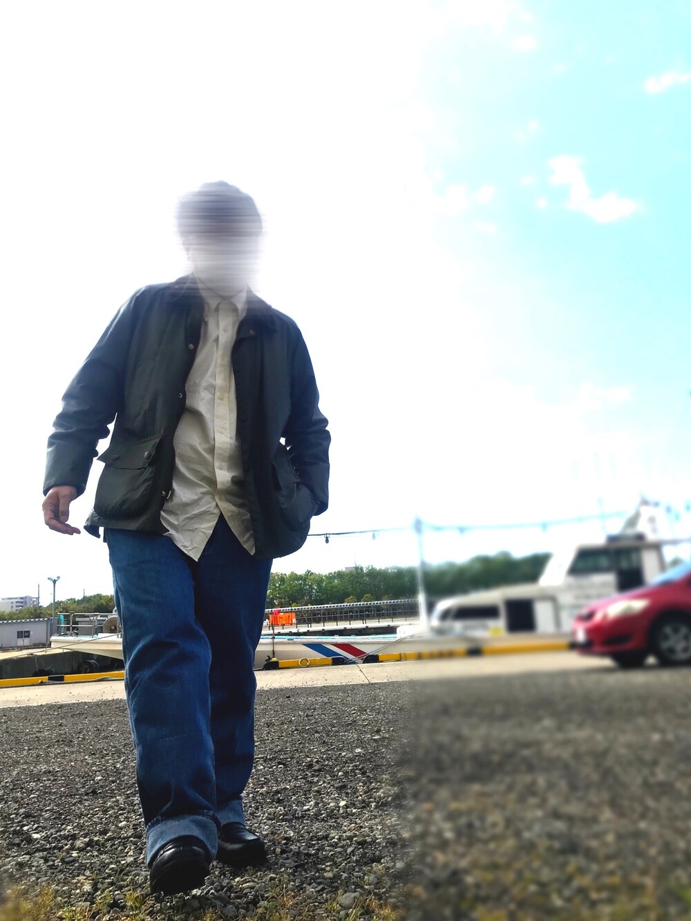バブアーコーデ セージ色のバブアーに明るめのデニムわ合わせてみました! カジュアルになりすぎないようにインナーはシャツを着用
