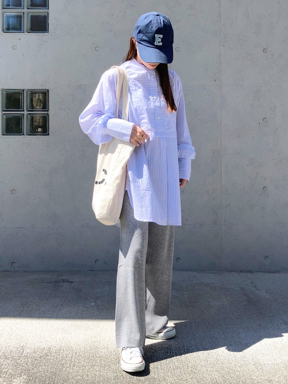 ブルー×グレー🩶🩵 爽やかな色味にリブニットのパンツで 初秋コーデでした✨