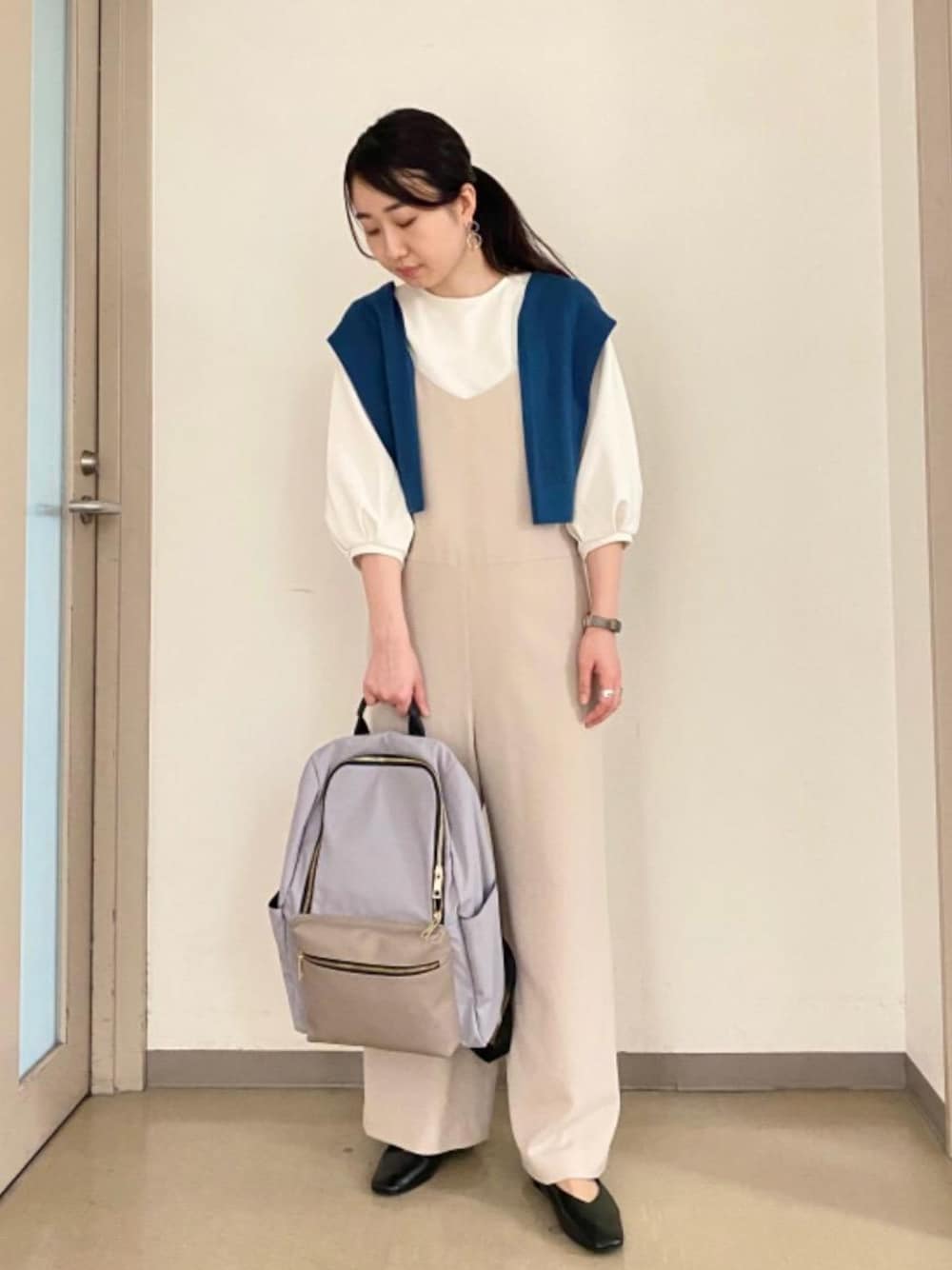 ・身長 158cm ・普段サイズ トップス/36(s)ボトムス/36(s)シューズ/23.5cm [サイズ感] トップス:ぴったりサイズ サロペット:肩紐で調節可能ぴったりサイズ シューズ:ぴったりサイズ [コーディネートのポイント] ワントーンでまとめたシンプルな組み合わせに差し色にロイヤルのカーディガンを合わせております。 サロペットにリュックを合わせる事で動きやすく、かつ手が塞がらないので休日着用していただきやすいようなスタイリングです!