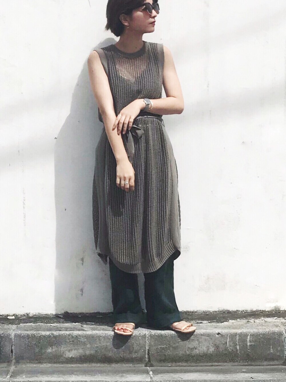 アヤカのワンピース「BY コットンメッシュバックスリットノースリーブワンピース о」を使ったコーディネート