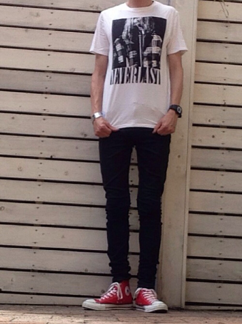 顔がね、険しいんですよ😂🙏 made in japan mede in tohoku 白Tはめちゃいいですよねー! 今日も帽子被ってるんですけど外してみました◡̈⋆ 気分転換で◡̈⋆✨ コンバースHIはいつでも使えます!少し強く見せたいときカッコ良くのときはよく赤をつかいます😀👍🌻