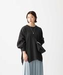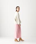 [身長] 158cm [素材感] トップス:あたたかみのある裏起毛素材 スカート:柔らかなサテン素材 [サイズ感] トップス:ゆったり ボトムス:タイト [コーディネートポイント] スカートの発色の良さを生かすため色合わせを意識。
