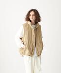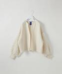 [身長] 158cm [素材感] ベスト:細番手で高密度、シルキーなポリエステル素材。 カーディガン: ループのボリューム感とガーター編のざっくりした風合いを出したミドルゲージニット。 パンツ: 洗いこんだ柔らかな風合いの厚みのあるデニム素材 [サイズ感] ベスト:ゆったり カーディガン:ややゆったり パンツ:標準 [コーディネートポイント] 袖ボリュームがかわいいニットを活かしたカジュアルコーディネート。トップスにボリュームがある分、ボトムをすっきりさせてヒールアップブーツでバランスをとっています。