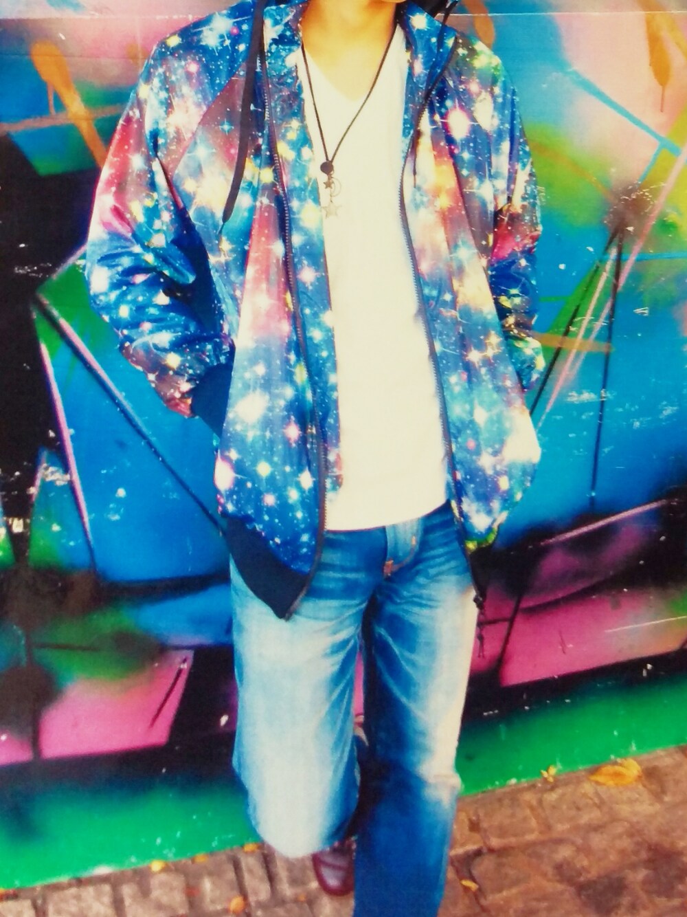 見て頂きありがとうございます! 普段あんまりしないストリート系です⤴ 総柄の服は、1枚で存在感を放てるので大好きですね! 特に宇宙柄の服は、もっともっと集めたいですな~