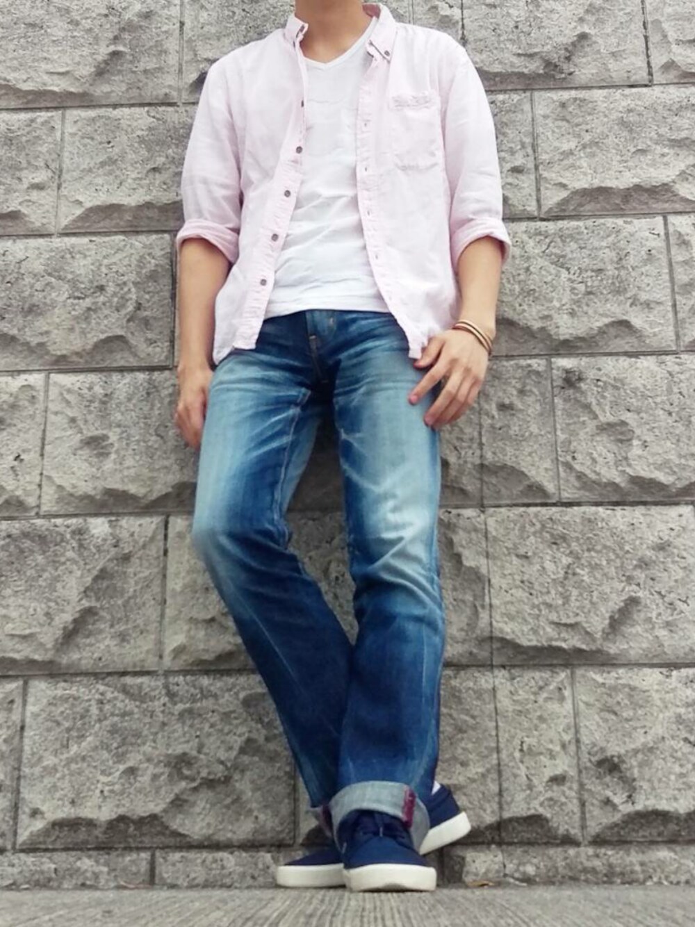 見て頂きありがとうございます(^o^) 個人的にピンクシャツ大好きですね! ジーンズ&白Tシャツとの組合わせ、かなりはまってます(笑)