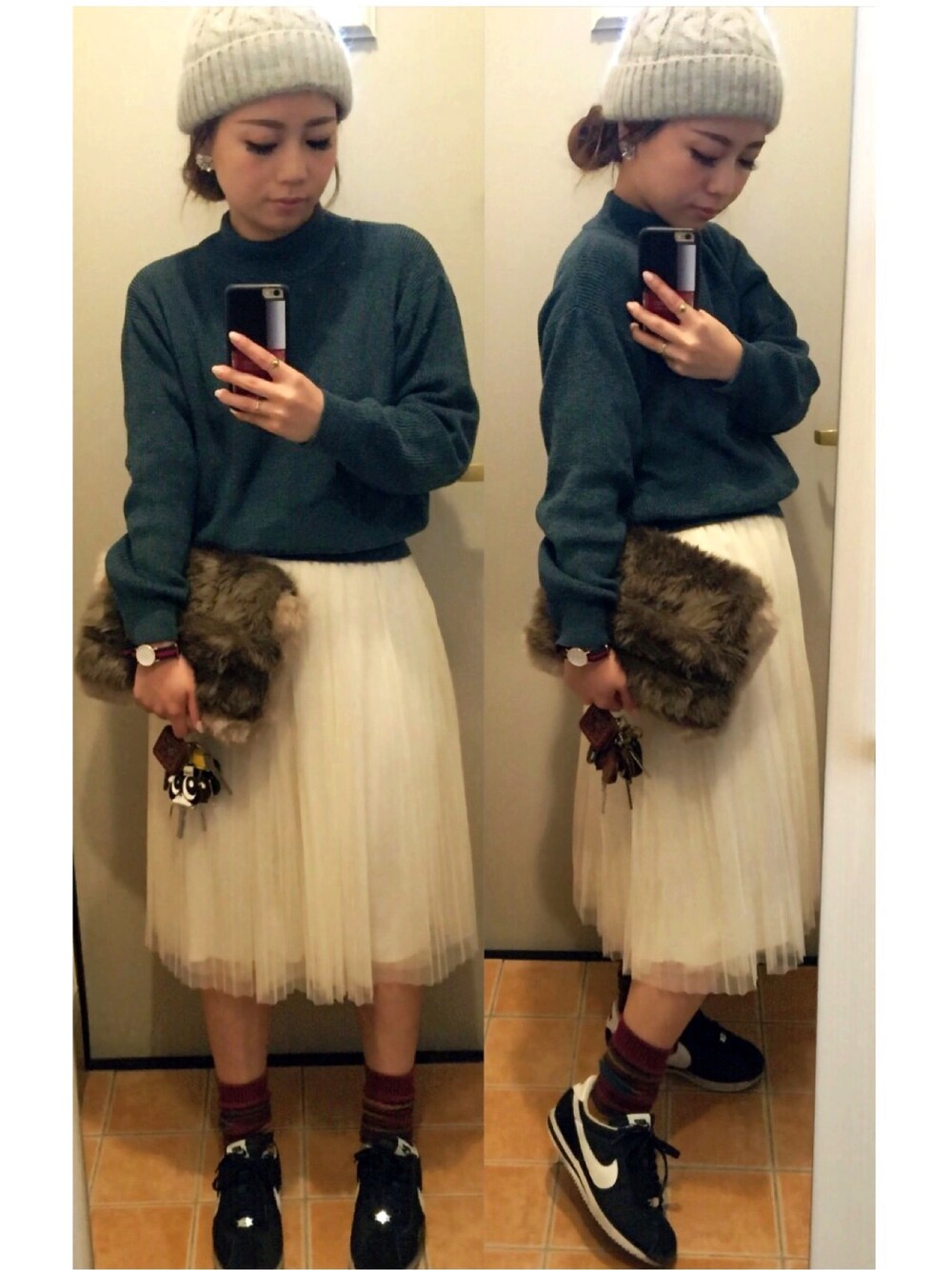 SHIHOのクラッチバッグ「ファーハンドルクラッチ」を使ったコーディネート