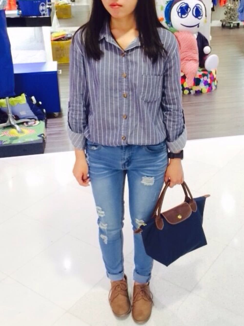 Babette Lのトートバッグ「Longchamp Le Pliage Weekend Travel Bag, New Navy」を使ったコーディネート