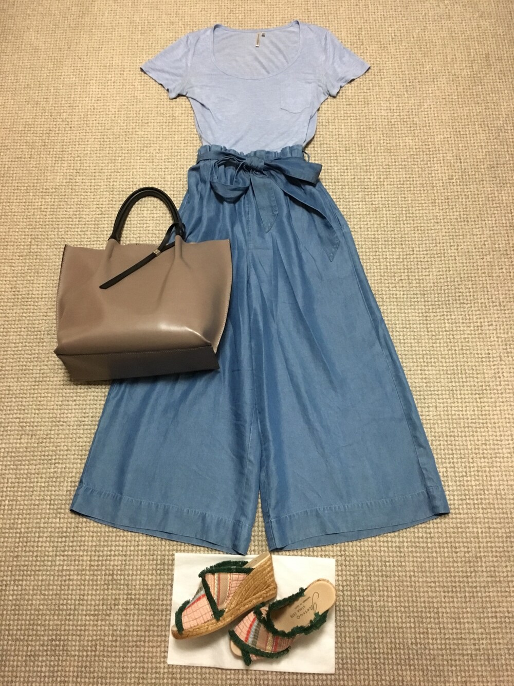 暑いですね…。 Tシャツとふわっとワイドパンツで風通しよく。。。 気やすめか(^^;A