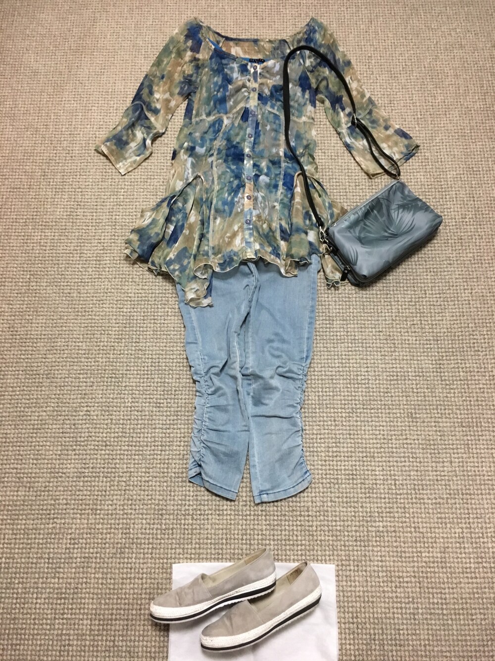 またまた暑っ💦 さすがにタンクトップにシースルーシャツをあわせてみました。 シューズはエスパドリーユで。
