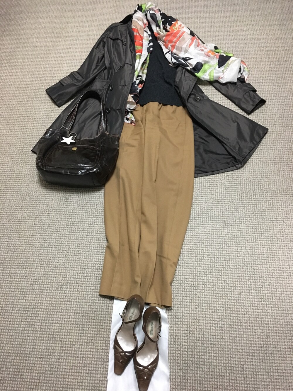 火曜日のコーデ。 少し寒かったのでウールのセーターとタックパンツで合わせてみました。 チャコールグレー×キャメルです。