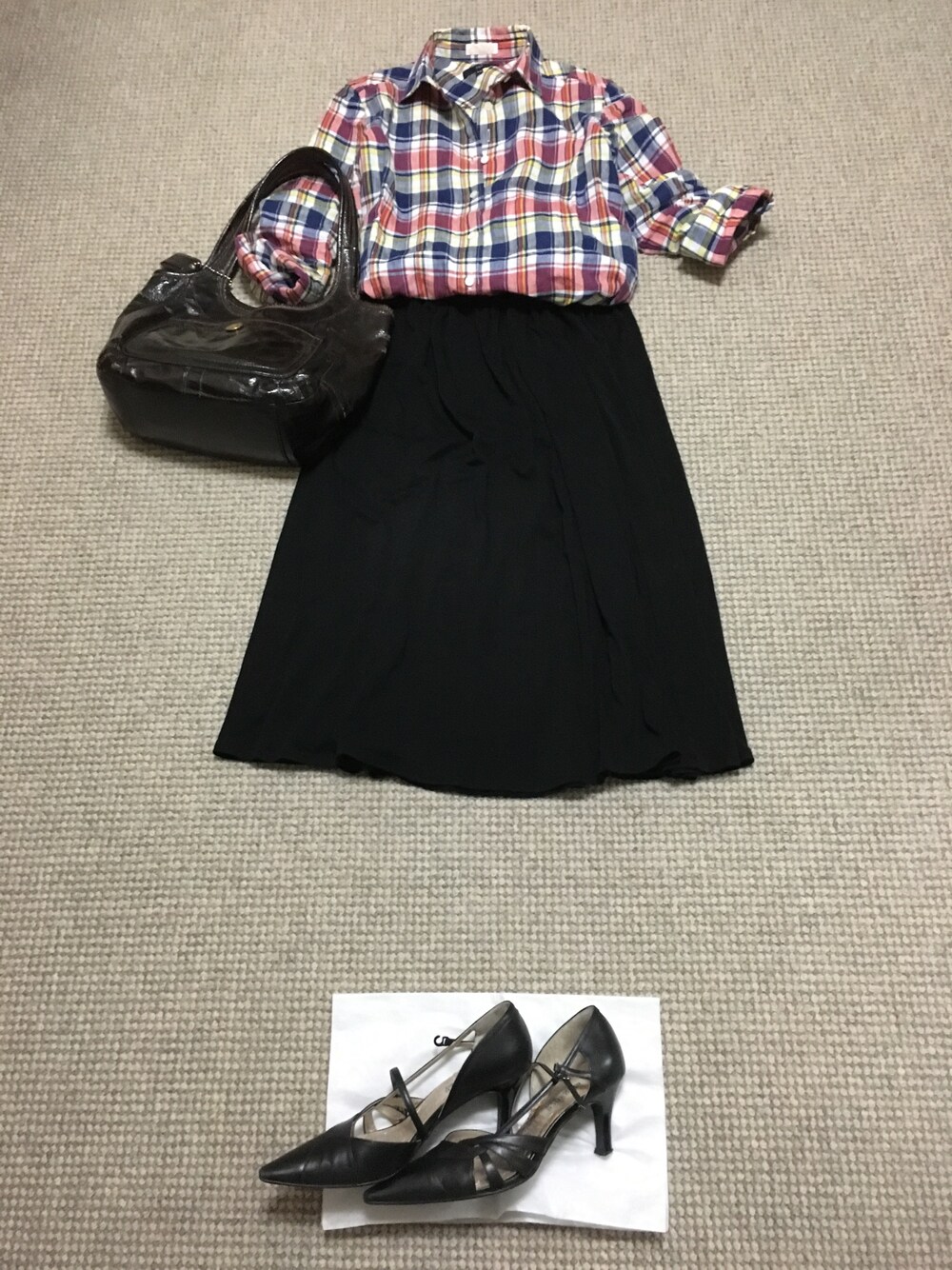 チェックシャツ×フレアスカートでオフィスカジュアルしてみました。