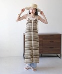 ミックスジャガード編みがかわいい、キャミワンピースをメインにしたコーディネート フロントのボタンを好みのところまで開けてスリット感覚で着てみました 柄物のロング丈は目線も縦に行くので体型カバーにつながります インナーにはタンクトップ、ボトムはデニムを合わせてカジュアルダウン ダブルガーゼのシャツを羽織って紫外線対策・季節の変わり目の寒暖差に対応してます◎