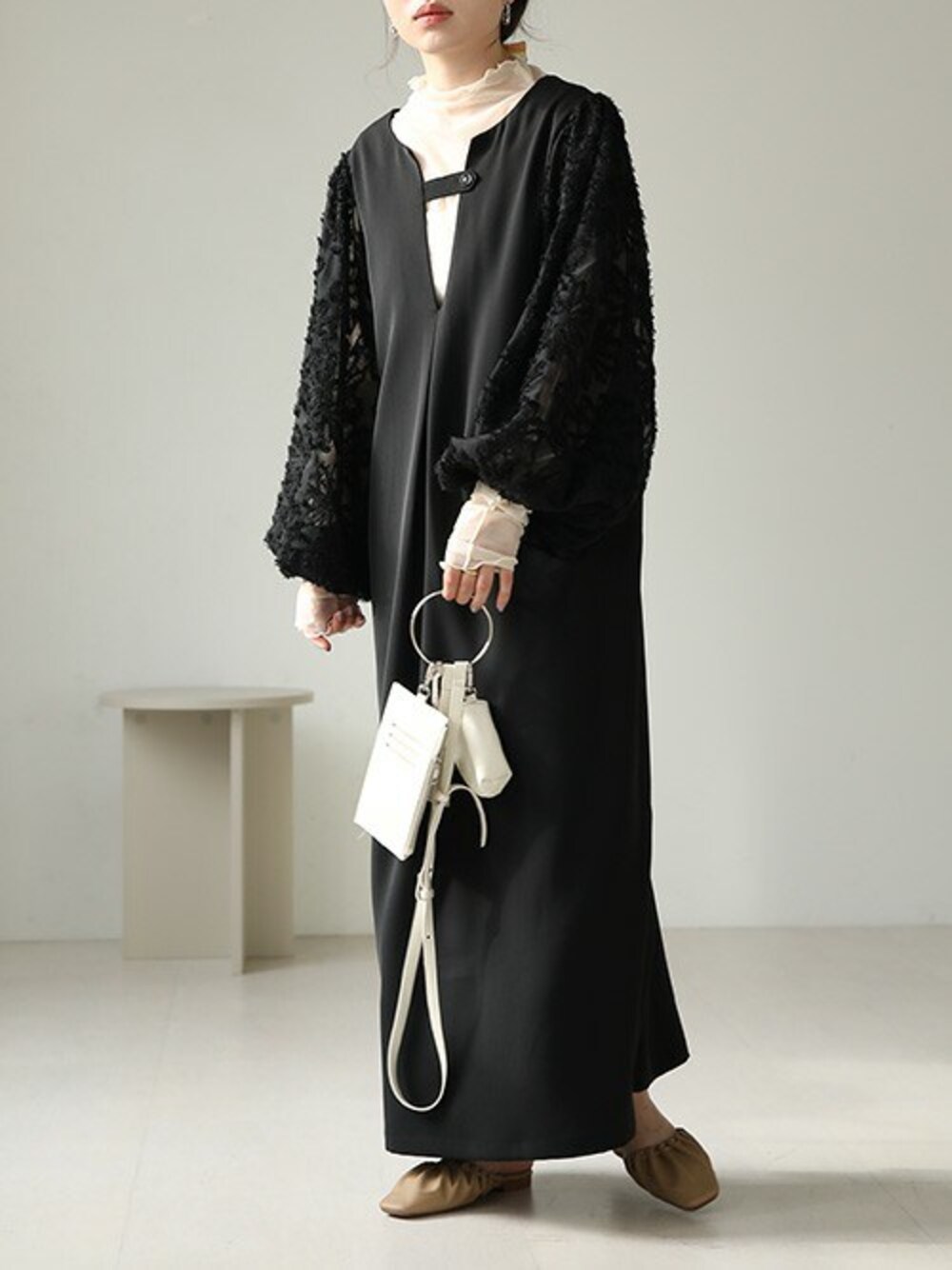 Bab press(Bab)のワンピース「ボリュームスリーブ2WAYワンピース」を使ったコーディネート
